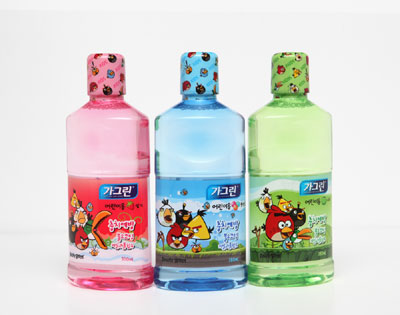 이번 출시된 어린이용 가그린은 아이들의 눈높이에 맞춰 게임 캐릭터인 앵그리버드를 포장용기에 사용하여 칫솔질하기 싫어하는 아이들에게도 자발적으로 사용을 유도할 수 있도록 했으며 사과맛, 딸기맛, 풍선껌맛 등 세 가지 맛을 출시해 아이들이 거부감 없이 사용할 수 있게 하였다. 또한 무알콜 처방으로 자극이 적어 안전하게 사용할 수 있는 것이 특징이다.
