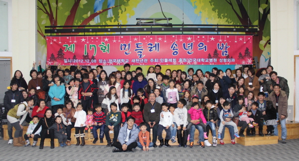 [쿠키 건강] 건국대병원은 지난 8일 구순구개열 환아들의 모임인 ‘민들레회’와 함께 건국대학교 새천년관에서 ‘송년의 밤’ 행사를 가졌다고 밝혔다.