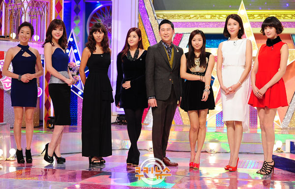 [쿠키 연예] 18일 오후 서울 상암동 DMS스튜디오에서 QTV ‘신동엽과 순위 정하는 여자’ 녹화현장 공개가 이루어진 가운데 출연진이 포즈를 취하고 있다.