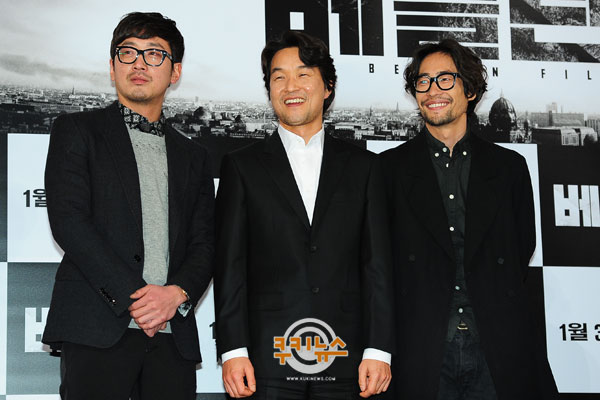 [쿠키 연예] 배우 하정우, 한석규, 류승범(왼쪽부터)이 21일 오후 서울 CGV왕십리점에서 열린 영화 ‘베를린’ (감독 류승완, 제작 외유내강) 언론시사회에 참석했다.