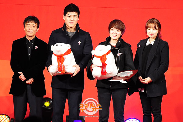 [쿠키 스포츠] 31일 오전 서울 하얏트호텔에서 열린 제 18회 코카-콜라 체육대상 시상식에서 김현우, 김장미 선수(가운데)가 신인상을 수상했다.