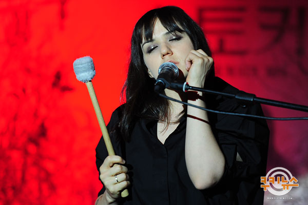 [쿠키 영화] 가수 에밀리 웰스가 21일 오전 서울 한남동 그랜드하얏트 서울에서 열린 영화 ‘스토커’(감독 박찬욱) 기자회견에서 멋진 공연을 펼치고 있다.