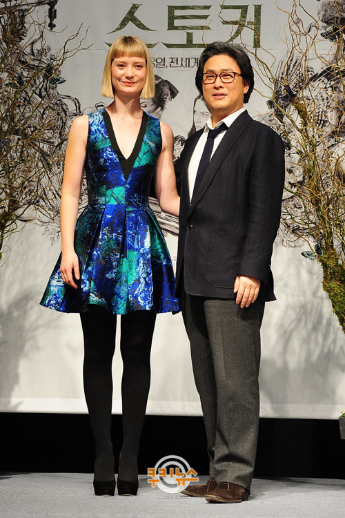 [쿠키 영화] 할리우드 배우 미아 바시코브스카, 박찬욱 감독(왼쪽부터)이 21일 오전 서울 한남동 그랜드하얏트 서울에서 열린 영화 ‘스토커’(감독 박찬욱) 기자회견에 참석했다.