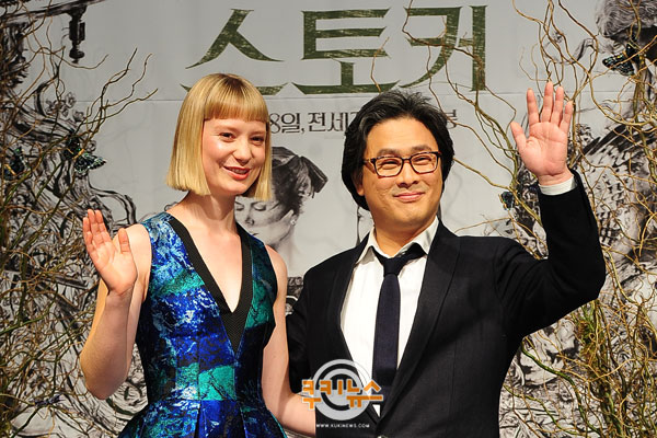 [쿠키 영화] 할리우드 배우 미아 바시코브스카, 박찬욱 감독(왼쪽부터)이 21일 오전 서울 한남동 그랜드하얏트 서울에서 열린 영화 ‘스토커’(감독 박찬욱) 기자회견에 참석했다.