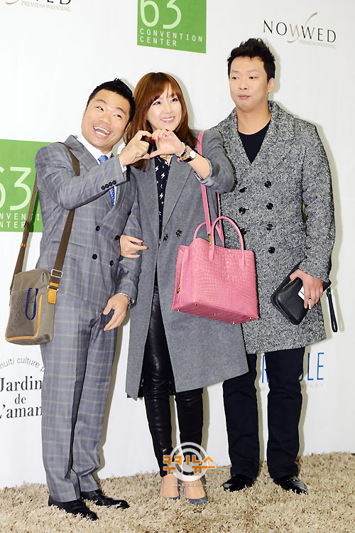 [쿠키 연예] 개그맨 정종철, 김지혜, 박준형(왼쪽부터)이 22일 오후 서울 여의도 63컨벤션에서 개그맨 윤형빈-정경미 결혼식에 참석해 포토타임을 갖고 있다.