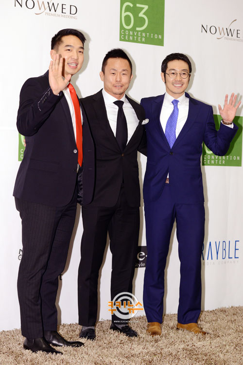 [쿠키 연예] 후니훈, 서두원, 이켠(왼쪽부터)이 22일 오후 서울 여의도 63컨벤션에서 개그맨 윤형빈-정경미 결혼식에 참석해 포토타임을 갖고 있다.