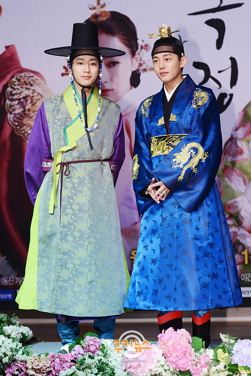 [쿠키 연예] 배우 이상엽, 유아인(왼쪽부터)이 1일 오후 경기 일산 엠블호텔에서 열린 SBS 월화드라마 ‘장옥정, 사랑에 살다’ 제작발표회에 참석했다.