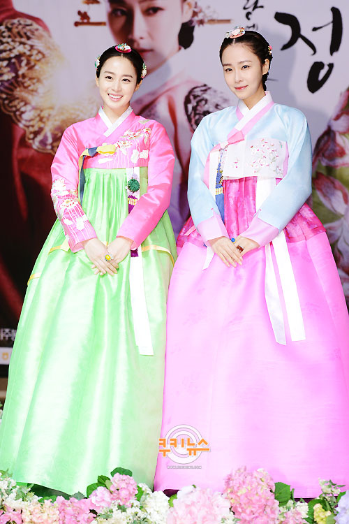 [쿠키 연예] 배우 김태희, 홍수현(왼쪽부터)이 1일 오후 경기 일산 엠블호텔에서 열린 SBS 월화드라마 ‘장옥정, 사랑에 살다’ 제작발표회에 참석했다.