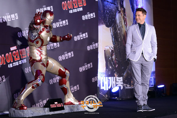 [쿠키 영화] 할리우드 배우 로버트 다우니 주니어가 4일 오전 서울 여의도 콘래드 호텔에서 열린 영화 ‘아이언맨 3’ 내한기자회견을 열었다.