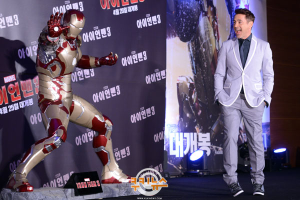 [쿠키 영화] 할리우드 배우 로버트 다우니 주니어가 4일 오전 서울 여의도 콘래드 호텔에서 열린 영화 ‘아이언맨 3’ 내한기자회견을 열었다.