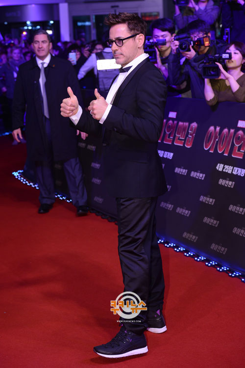 [쿠키 영화] 할리우드 배우 로버트 다우니 주니어가 4일 오후 서울 영등포 타임스퀘어에서 ‘아이언맨 3’ 레드카펫 프리미어 행사에 참석했다.