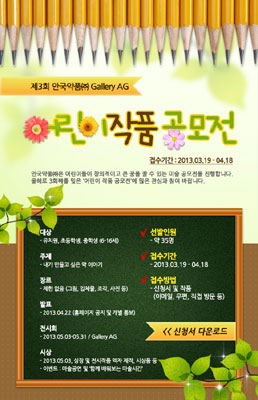 [쿠키 건강] 안국약품 ‘갤러리 AG’에서 가정의 달 5월 어린이날을 맞아 어린이들의 순수한 꿈과 창의력으로 만들어낸 미술작품을 전시하는 공모전을 진행한다.