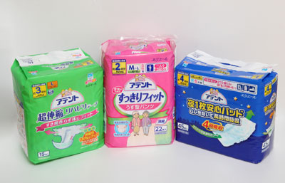 특히 아텐토는 사용자의 활동능력과 배뇨량 등에 따라 다양한 선택이 가능한 것 외에도 고품질의 소재 사용으로 피부 자극이 적고 전면 통기성시트 적용으로 쾌적한 사용이 가능하다. 또한 입체적인 샘 방지 밴드 적용 및 흡수체에 냄새 제거 성분을 첨가해 사용시 새거나 냄새나는 걱정을 줄여 기능성을 높인 것이 특징이다.