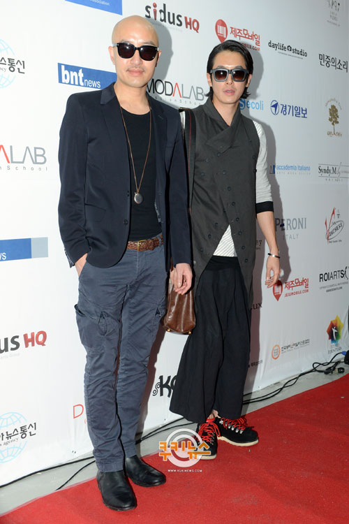 [쿠키 연예] 배우 홍석천, 최필립(왼쪽부터)이 27일 오후 서울 신사동 현대갤러리에서 열린 패션스쿨 모다랩 패션쇼에 참석해 포즈를 취하고 있다.