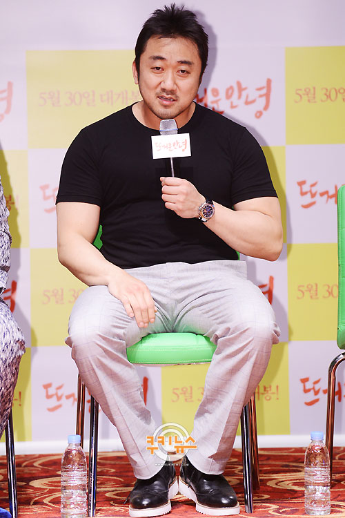 [쿠키 영화] 배우 마동석이 7일 오전 서울 자양동 롯데시네마 건대입구점에서 열린 영화 ‘뜨거운 안녕’(감독 남택수) 제작보고회에 참석했다.