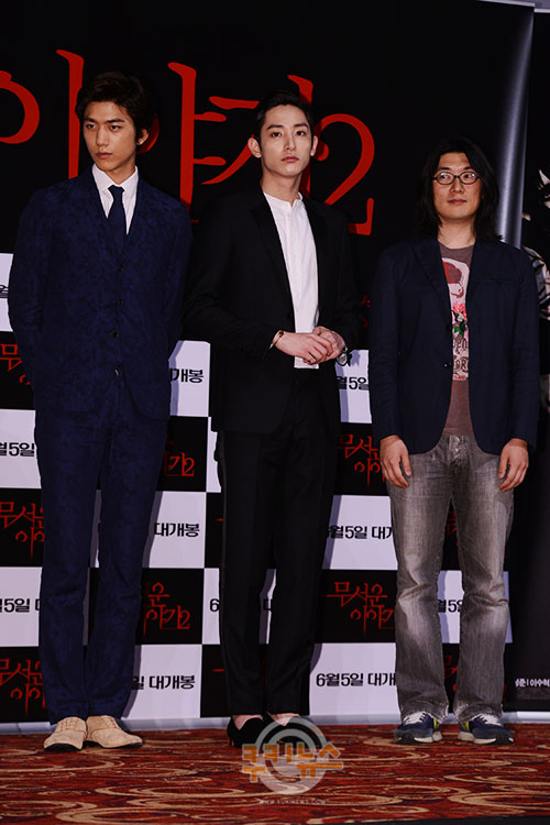 [쿠키 영화] 배우 성준, 이수혁, 김성호 감독(왼쪽부터)이 28일 오후 서울 자양동 롯데시네마 건대입구에서 열린 영화 ‘무서운 이야기 2’(감독 김성호, 정범식, 김휘, 민규동) 언론시사회에 참석했다.