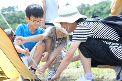 참가 가족들은 캠프 기간 제주 서부 아홉굿 마을 일대에서 직접 텐트를 설치하고 가족들과 함께 야영을 하며 옥수수 수확 체험, 천연모기퇴치제 만들기, 건강 간식 보리빵 만들기 등 친환경 프로그램에 참여했다.