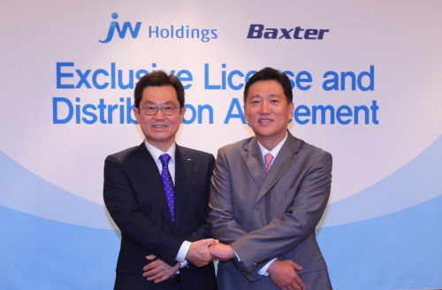 이와 함께 양사는 미국, 유럽을 비롯한 전세계 국가에서 제품 허가 등록을 마친 후 JW홀딩스는 10년 동안 이들 제품을 박스터에 공급할 계획이다.
