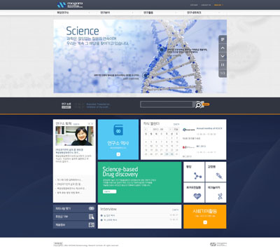 메인화면에는 연구소 소개, 연구분야, 연구활동, 연구네트워크 등 4가지 메뉴를 전면에 배치하여 정보접근이 쉬워졌다.