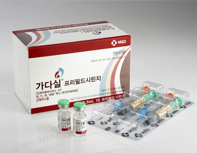 MSD 가다실은 세계 최초 자궁경부암 예방백신으로 국내에서 9~26세 여성과 남성을 대상으로 적응증을 승인 받았으며 0개월(최초접종일), 최초 접종 후 2개월과 6개월의 접종 일정을 따르도록 한다.