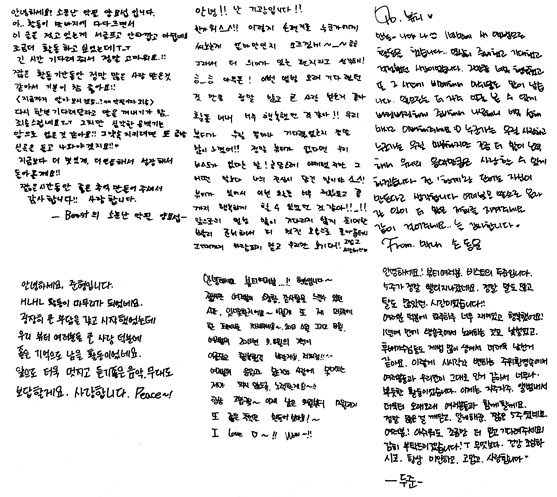 이 편지를 통해 리더 윤두준은 “5주가 정말 빨리 지나갔네요. 시시각각 변하는 주위환경 속에서 여러분과 우리만이 그대로인거 같아서 너무나 뿌듯한 활동이었습니다”라며 활동 마무리에 대한 아쉬움을 전했다. 멤버 장현승은 “짧지만 여러분의 소중함, 감사함을 느낄 수 있었던 시간. 2013년 7,8월의 기억이 저처럼 아름답고 행복했길”이라며 감사를 표했다. 양요섭 역시 “짧은 활동기간동안 정말 많은 사랑을 받았습니다. 지금보다 더 멋있게, 더 성장해서 돌아올게요. 사랑합니다”라고 무한한 애정을 드러냈다.
