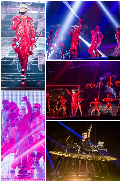 지드래곤의 콘서트는 화려한 세트보다는 전적으로 지드래곤 하나만을 위해 집중된 무대가 돋보였다. 최근 흔히 아이돌 콘서트 등에서 보이는 어마어마한 무대장치같은 것은 없었다. 그러나 무대 위에 오롯이 혼자 선 지드래곤의 존재감만으로 세트는 충분했다. ‘시간이 돈이라면 난 상당히 빈곤’하다는 지드래곤은 ‘미치Go’, ‘하트브레이커’ ‘원 오브 어 카인드’ 에 이어 신곡 ‘쿠데타’로 무대를 열광의 도가니로 물들였다.