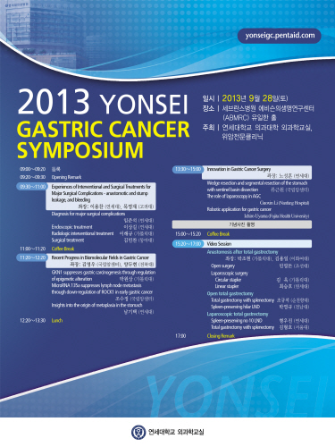 세브란스 위암전문클리닉은 오는 28일 오전 9시 에비슨의생명연구센터 유일한홀에서 ‘2013 연세 위암 심포지엄’을 개최한다고 10일 밝혔다.