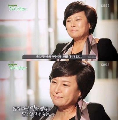 12일 오후 방송된 KBS ‘스타 마음 여행 그래도, 괜찮아’에서 박원숙과 오미연은 체코로 여행을 떠났다. 이날 두 사람은 배낭여행을 온 한국인 학생들을 만나 이야기를 나눴다. 그러던 중 박원숙은 세상을 먼저 떠난 아들에 대한 그리움을 털어놓으며 눈시울을 붉혔다.