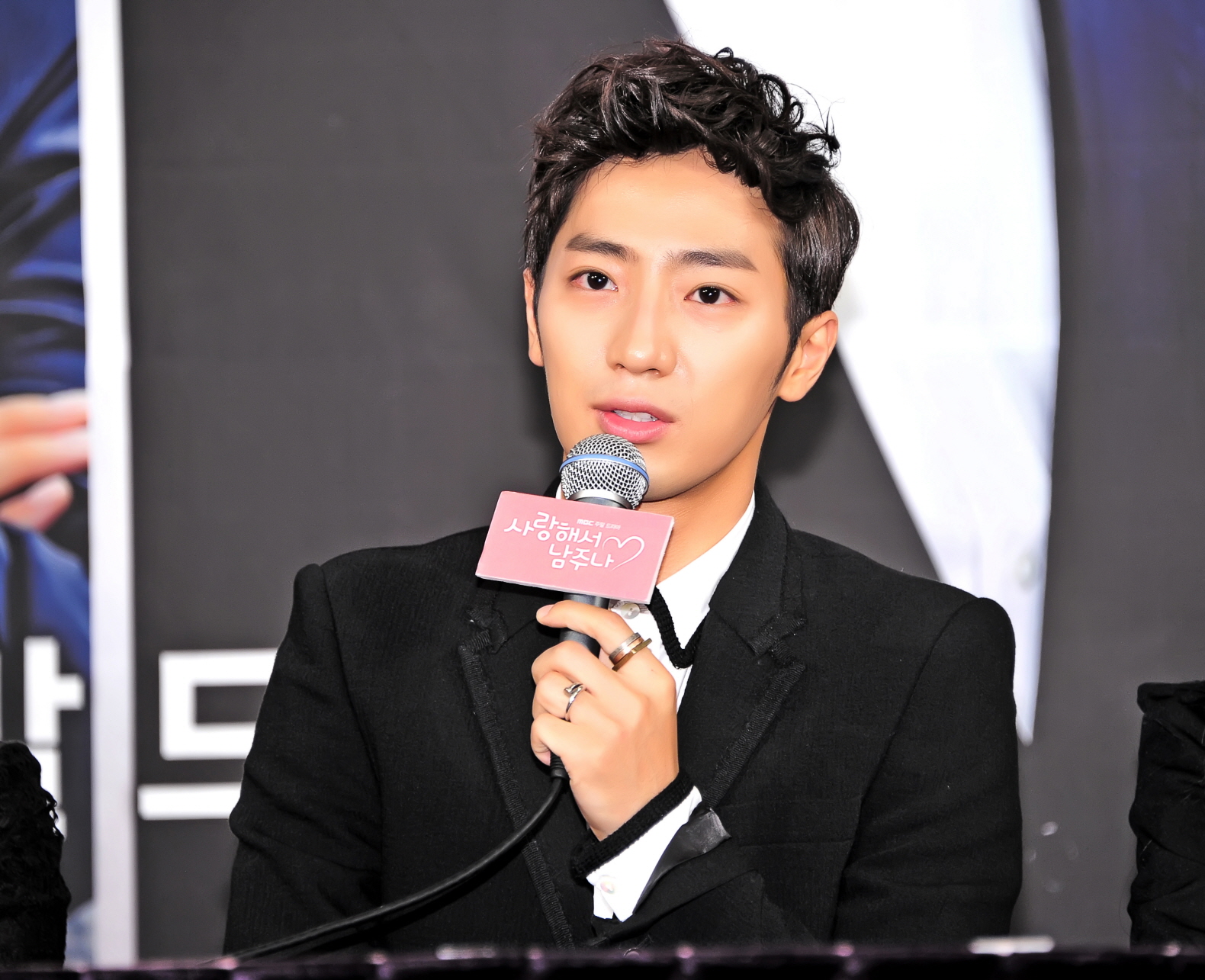 25일 오후 서울 여의도 63컨벤션에서 열린 MBC 주말드라마 ‘사랑해서 남주나’ 제작발표회에 참석한 이상엽은 “홍수현과의 로맨스, 공현주가 질투하지 않나”라는 질문에 “질투가 있는지 없는지는 모르겠지만 티는 안 낸다”라며 “‘장옥정, 사랑에 살다’를 찍을 때는 나보다 드라마를 더 좋아했다”고 웃었다.