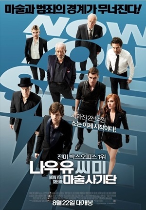 영화 '나우 유씨 미’(감독 루이스 리터리어)는 마술사들의 의적활동을 그린 범죄 액션 장르다. 네 명의 마술사들이 은행 털이 마술쇼로 절도를 계획하고 이를 시행하는 과정을 표현하는 내용을 담았다. 마술을 통해 부자들의 검은 돈을 훔쳐 가난한 이들에게 되돌려주는 ‘현대판 로빈후드’ 스토리.