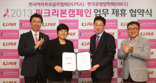 지난 10월 21일 KLPGA 강춘자 수석부회장과 한국유방암학회 송병주 이사장, 김성원 홍보이사, 김성용 총무이사 등이 참여한 협약식에서 양측은 업무 제휴 협약서에 서명하고, 유방암 인식 개선을 위해 협력할 것을 다짐했다.