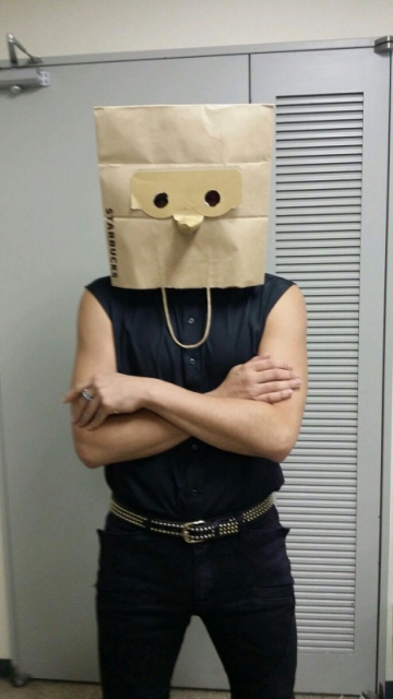 [쿠키 연예] 그룹 슈퍼주니어의 멤버 강인(본명 김영운,28)이 종이봉투를 쓰고 ‘강인이머리’를 선보였다.