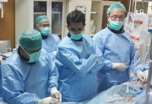 배 교수는 심근경색증, 협심증, 부정맥 등 심장에 나타날 수 있는 다양한 질환에 대해 그동안의 시술경험과 준비해간 동영상 등으로 현지 의료진들에게 자세하게 전수했다.