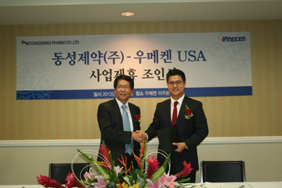 [쿠키 건강] 동성제약이 지난 4일 세리토스에 있는 우메켄USA 본사에서 사업제휴 조인식을 가졌다. 건강식품 전문회사 우메켄 USA와 사업제휴를 통해 중국과 대만에 이어 미국 시장에 진출한다.