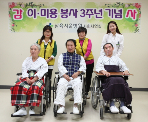 [쿠키 건강] 삼육서울병원 사회사업실이 매월 둘째 주 화요일 건강교육관에서 진행하는 ‘환우사랑 이·미용 봉사’가 3주년을 맞았다.