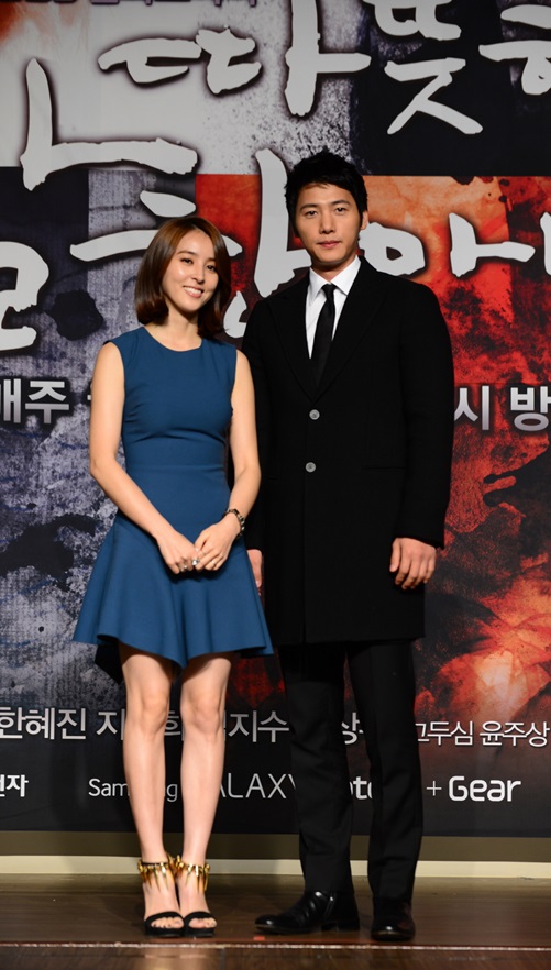 [쿠키 연예] 배우 한혜진, 이상우(왼쪽부터)가 서울 당산동에서 열린 SBS 새 드라마 ‘따뜻한 말 한마디’ 제작발표회에 참석해 포즈를 취하고 있다.