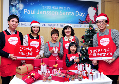 [쿠키 건강] 한국얀센 임직원과 임직원 가족 50여 명은 지난 7일 사회복지법인 ‘아이들과 미래’ 자원봉사자들과 함께 ‘한국얀센과 함께하는 러브 산타 데이(Love Santa Day)’를 열고, ‘폴얀센 장학금’ 장학생들에게 전달할 크리스마스 선물을 직접 만드는 시간을 가졌다.