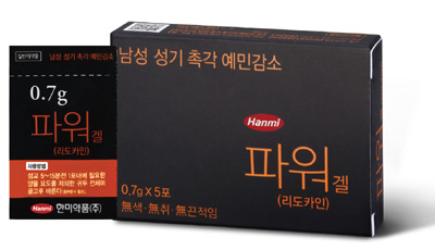 한미약품은 알코올 함량을 4%까지 낮춰 남성성기 도포 때 발생할 수 있는 자극감을 줄인 새 파워겔을 선보였다.