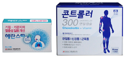 이번에 출시된 제품은 생약성분의 진해거담제, ‘헤란스시럽’과 콘드로이틴과 비타민의 복합제 ‘콘트롤러300연질캡슐’ 2종이다.