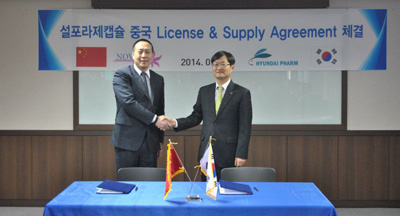 현대약품은 9일 서울 논현동 현대약품 본사에서 중국의 노보텍(Novotek) 그룹과 5000만 달러 규모(약 531억원)의 설포라제 캡슐에 대한 중국 내 라이센스 및 공급 계약을 체결했다.