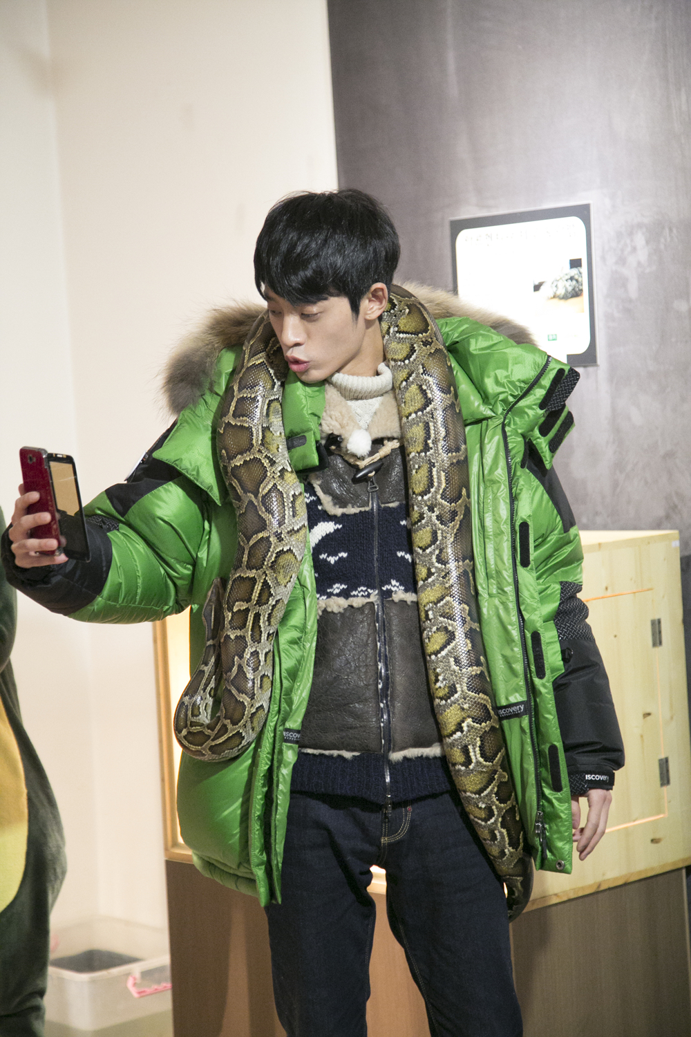[쿠키 연예] 가수 정준영이 커다란 뱀을 온몸에 둘렀다.