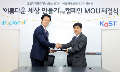 [쿠키 건강] 지난 4일 여의도 라이프플래닛 타운홀에서 한국인체조직기증지원본부와 교보라이프플래닛생명보험가 업무협약을 체결하고, 생명나눔과 상부상조 문화를 조성하기 위한 ‘아름다운세상 만들기’ 캠페인을 추진하기로 했다.