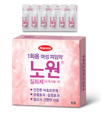 [쿠키 건강] 한미약품은 질좌제 타입의 1회용 여성 피임약 ‘노원’의 외부포장 및 규격을 리뉴얼해 재출시했다.