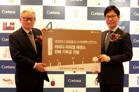 코리아나화장품은 국제백신연구소 한국후원회(IVI)에 백신 연구활동을 지원하는 후원금을 전달했다.