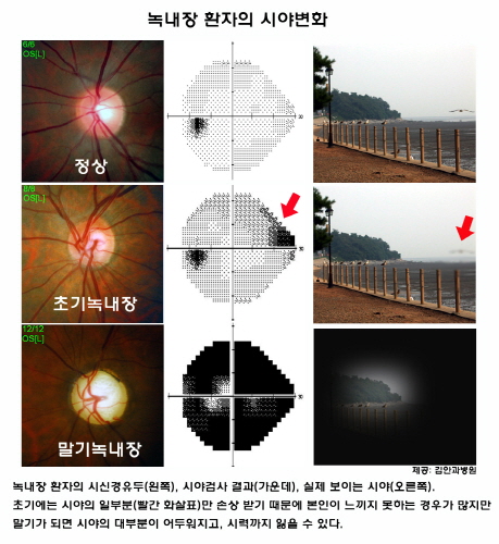 녹내장은 시각 정보를 뇌로 전달하는 시신경이 손상되어 처음에는 보는 범위(시야)가 조금씩 줄어들다가 나중에는 시력의 손상도 함께 가져오는 질환인데, 높은 안압을 비롯하여 혈액순환 이상, 가족력, 고도근시, 고연령, 인종 등 여러 요인이 녹내장 발생에 관여하는 것으로 알려져 있다.