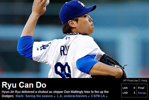 [쿠키 스포츠] ‘코리안 몬스터’ 류현진(27·LA 다저스)이 시범경기에서 5이닝 3피안타 4탈삼진을 기록했다. 비록 홈런 한방을 허용하며 1실점했지만 올 시즌 활약을 기대하게 하는 멋진 피칭이었다.