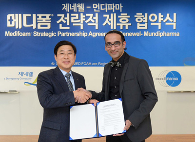문병현 제네웰 대표이사는 “메디폼?은 국내에서 이미 제품의 우수성을 인정받아 습윤 드레싱 분야에서 1위를 달리고 있다”며 “국내 순수 기술로 개발한 제네웰의 메디폼?과 세계적인 제약사인 먼디파마가 보유한 글로벌 네트워크의 조합은 전략적으로 이상적인 결합이며, 제휴를 통해 메디폼?이 세계적인 브랜드로 성장해 나가는 계기가 될 것으로 기대한다”고 밝혔다.