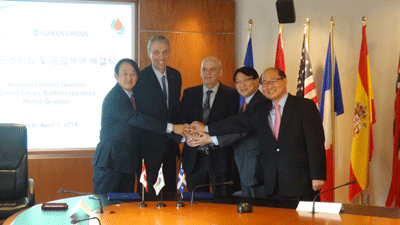 녹십자의 캐나다 자회사 GCBT(Green Cross Biotherapeutics는 캐나다 퀘벡 주정부 및 관련 기관과 재정지원 및 우선구매 협약을 지난 4일 체결했다.