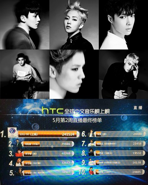 엑소-M은 지난 10일 오후 7시30분(현지시간)부터 중국 전역에 생방송된 CCTV ‘글로벌 중문음악 방상방’에서 새 타이틀곡 ‘중독(Overdose)’으로 24만여 표를 획득, 1위를 차지했다. ‘글로벌 중문음악 방상방’은 지난 3월부터 방송을 시작한 중국 최초의 순위제 음악 프로그램이다. 엑소-M은 1위를 차지한 ‘중독’무대를 이날 선보였다.