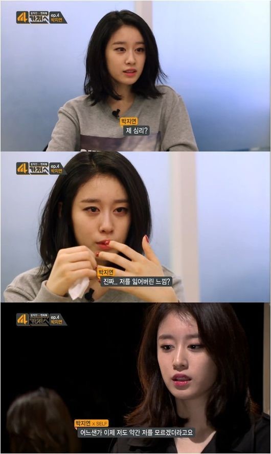 지연은 20일 방송된 케이블 채널 Mnet ‘발칙한 인터뷰 4가지쇼’에서 심리검사를 받다가 눈물을 쏟았다. 지연은 “대중이 나를 티아라의 멤버로만 바라보며 진짜 인간 ‘박지연’의 모습을 잃어버린 것 같다”며 “나를 잃어버린 느낌”이라고 말했다.